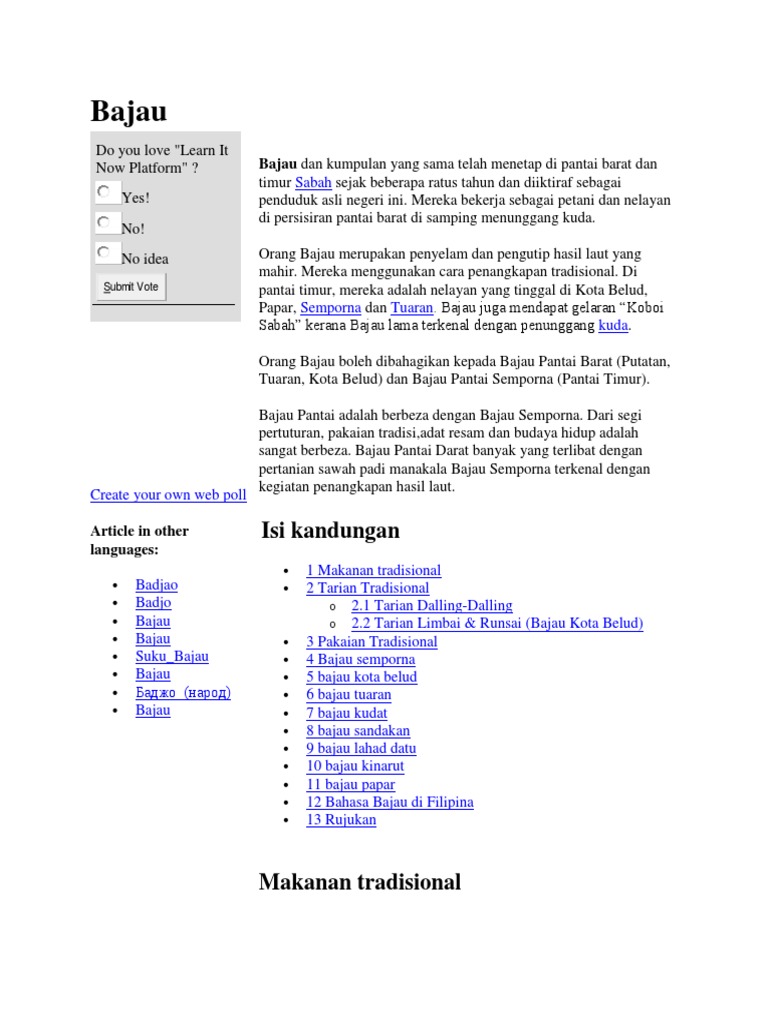 My Story Lovesmereadme Bajau Language At Home Kota Belud from 2.bp.blogspot.com They always love to meet new people especially tourist from other counties. In 2010, the population of kota belud was estimated at 91,272.1 the populace is almost evenly divided between the dusun and bajau sama peoples. 'once in a blue moon' kami sampai ke kota belud disebabkan memenuhi jemputan resepsi majlis kahwin di sana. Bajau samah vs english versi lingkodon kota belud. #triplocal if you have ample time to spend in kota kinabalu, rent a car and head to kampung melangkap, kota belud. Menurut cerita dari mulut ke mulut, bahawa pada zaman silam, sebelum adanya badan pemerintah, sering. Dalam kehidupan masyarakat bajau adat resam yang berkaitan dengan kelahiran amat dititik beratkan. Daerah kota belud mempunyai sebuah pentadbiran terawal di negeri sabah semasa pendudukan kerajaan british.