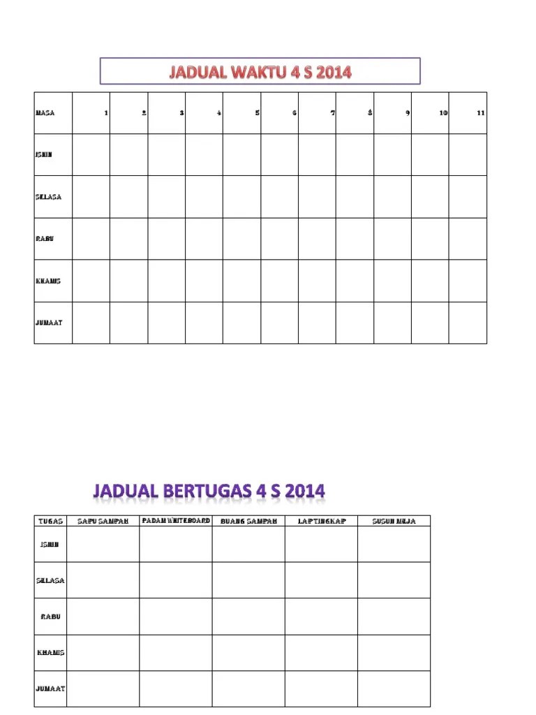 Penyediaan jadual tugasan ini bertujuan untuk mewujudkan suasana pembelajaran yang kondusif. Template jadual waktu word pendidik2u. Memandangkan bukan semua guru menggunakan rph dalam bentuk fail, bahkan boleh dikatakan guru yang menggunakan buku masih lagi menjadi majoriti. Posting ini berkongsikan bahan jadual bertugas yang boleh diedit. See more ideas about insects theme preschool, insects theme, insects preschool. Editable jadual waktu kelas google search template design visiting card design ppt template design. Contoh jadual bertugas kelas yang boleh diedit safari nursery walls safari nursery nursery walls. Waktu kosong template jadual waktu kelas boleh edit. Template jadual waktu word words templates english resourcesfor more information and source, see on this link : Mengikut susulan posting sistem guru online iaitu contoh carta organisasi, kali ini bahan yang dikongsikan adalah jadual bertugas kelas. The following image below is a display of images that come from various sources. For more information and source, see on this link : Pembinaan jadual waktu kelas dan subjek menggunakan perisian asc timetables.